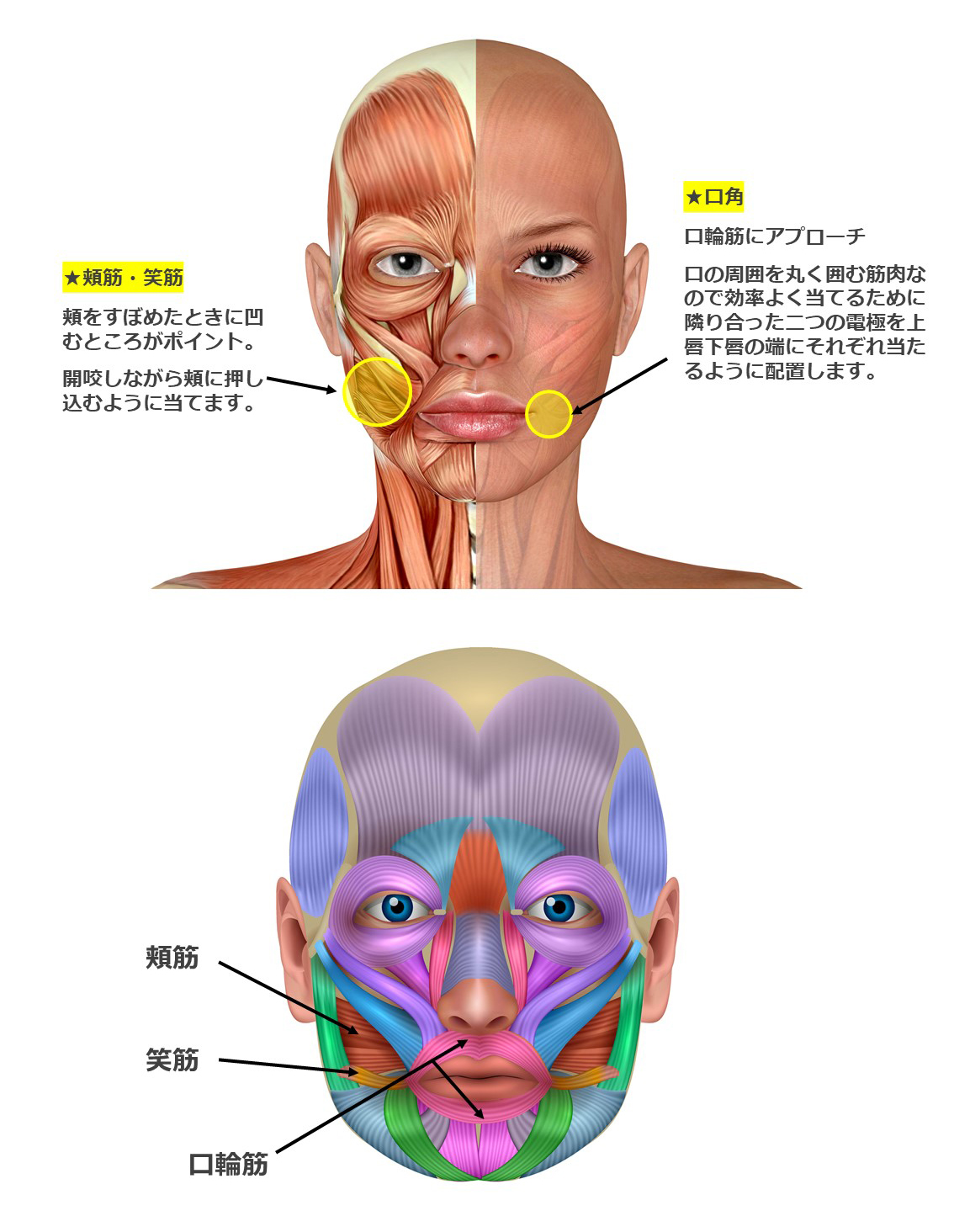 口角を外側に引きエクボを作るといわれているが、エクボの形成要因としてはモダイオラスが重要