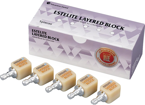 エステライトレイヤードブロックはCAD/CAM冠用材料(Ⅳ)として保険前歯冠に対応した積層タイプのCAD/CAM冠用ブロックです。