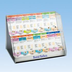 説明用プレートと補綴物がそれぞれ独立しているのでレイアウトが自由です。補綴物を分類ごとに分けることによりそれぞれの利点・欠点を比較して見ていただくことが可能です。また幅40cm越のワイドボディのため設置しておくだけで注目度抜群です。