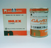 インレックス(オレンジ)は間接法専用でライラックに比べて軟質です。加熱軟化、削り具合、辺縁の破損しにくさ等はライラックと同じです。 間接法用によるワックスパターンの作製