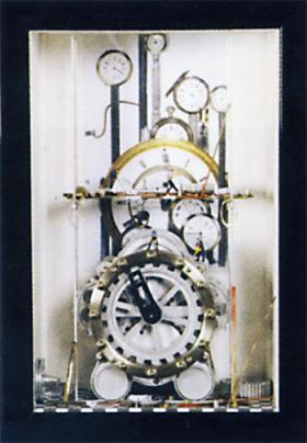 時計の振り子の下に歯ブラシがついています。 振り子の往復でブラッシングします。